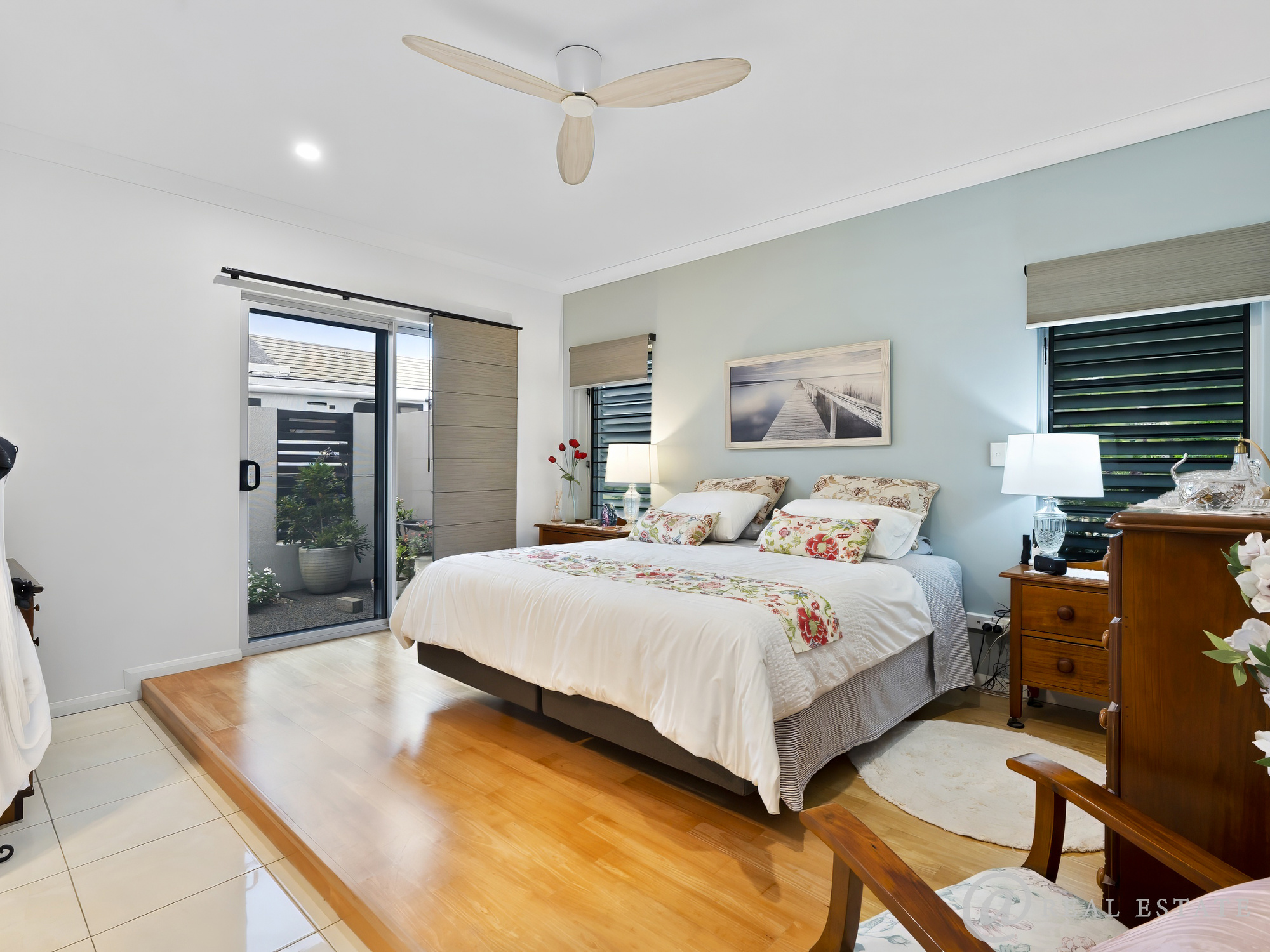 - The master suite is a private haven, featuring, raised timber floor feature, Sliding doors to a secluded courtyard, Walk-in robe, Luxe ensuite with stylish vanity and double-sized shower with twin shower heads and a Separate toilet