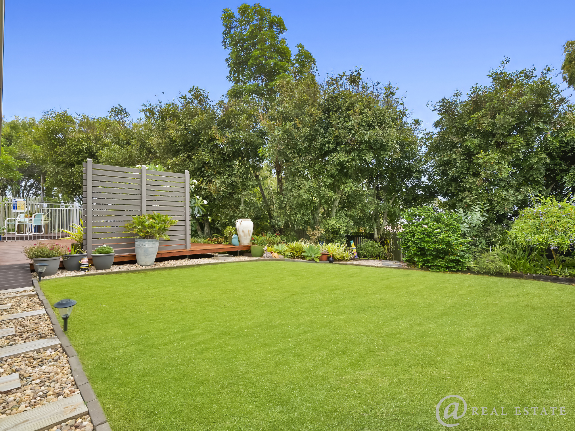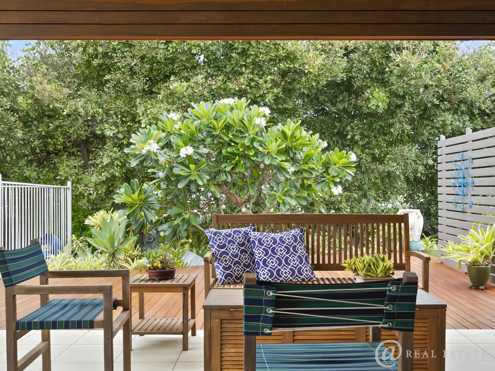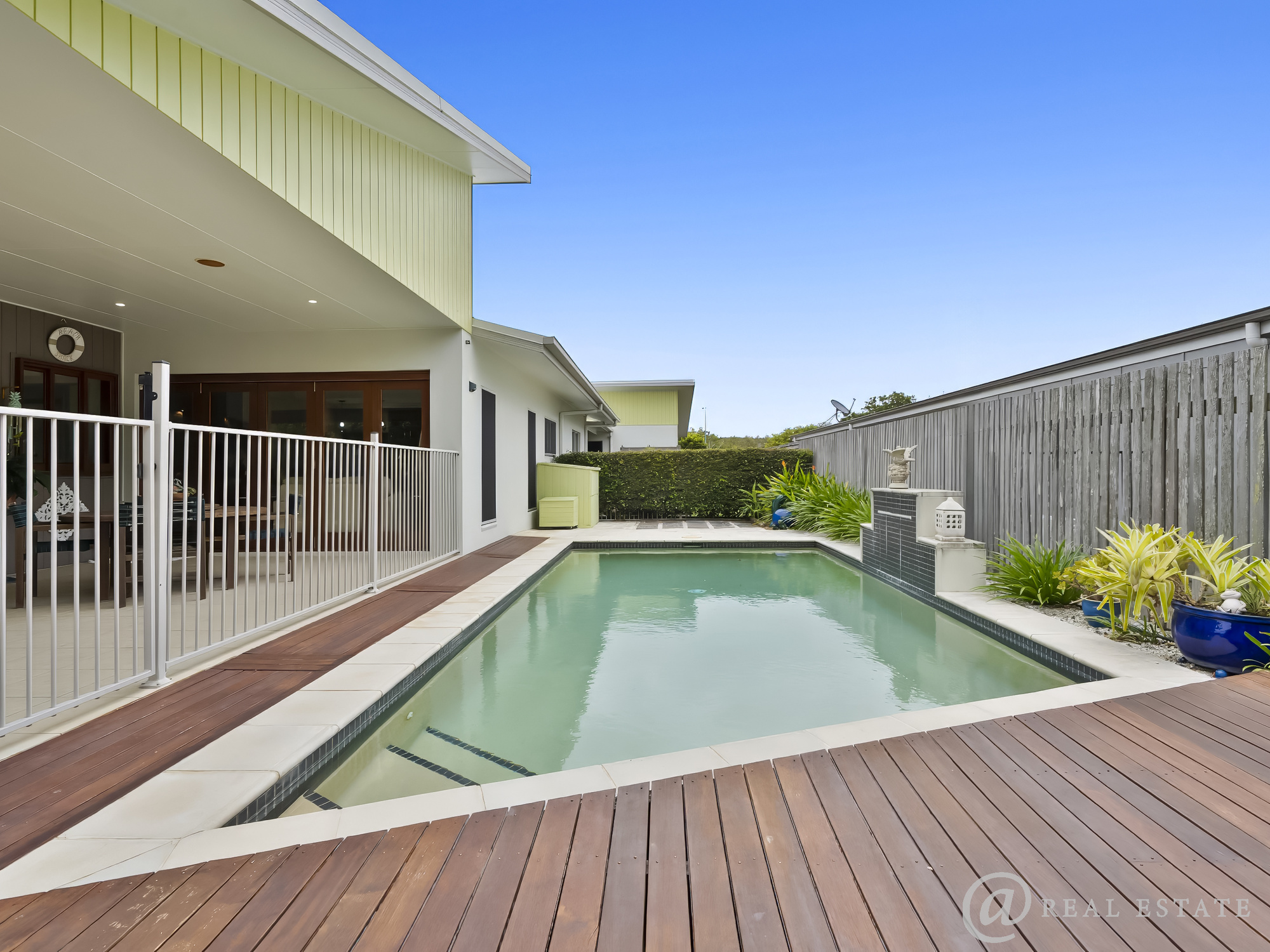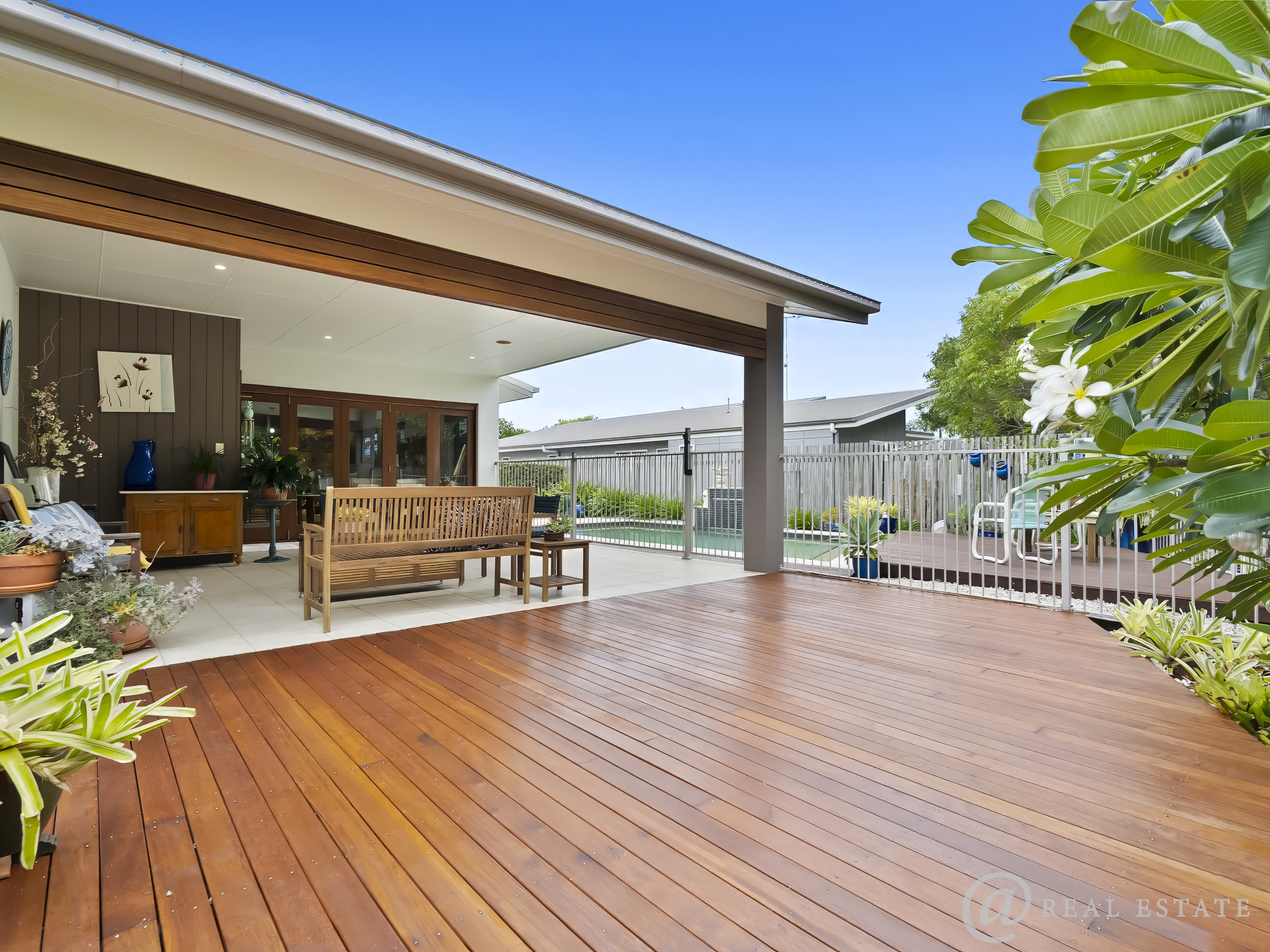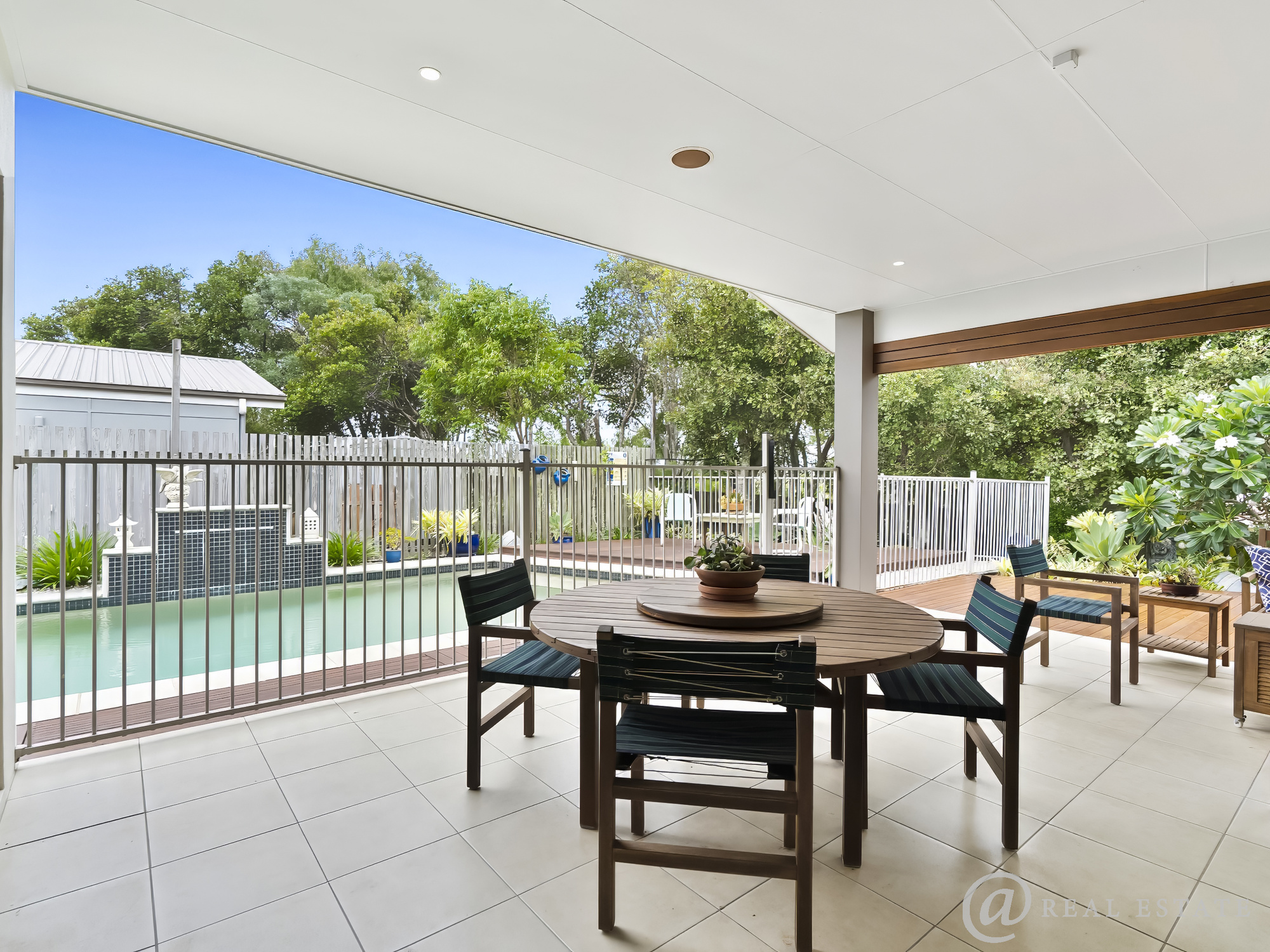 Enjoy morning coffee on the beautiful decked front patio, afternoons by the pool with treelined privacy or evenings entertaining under the covered patio as the gardens glow around you.