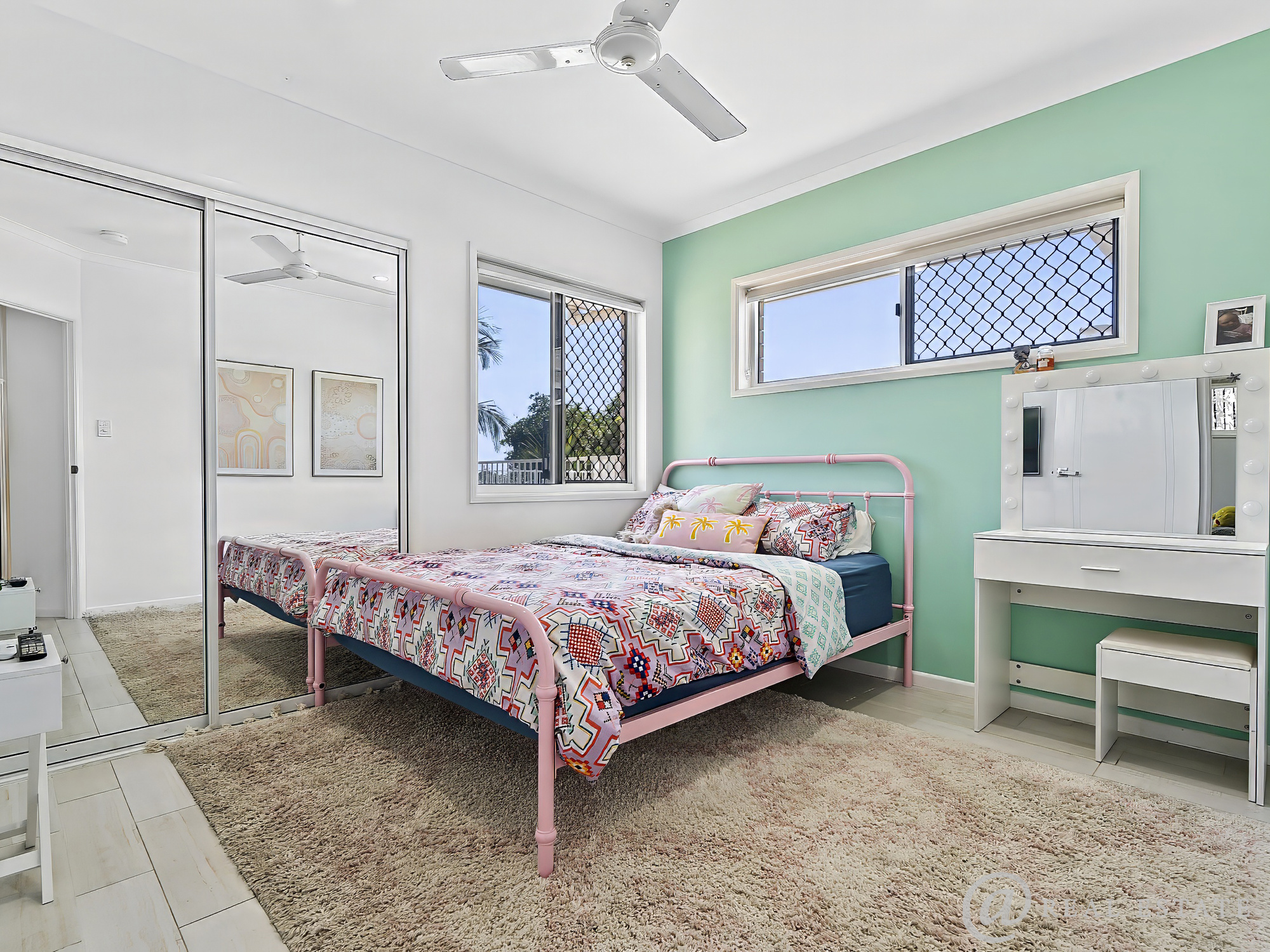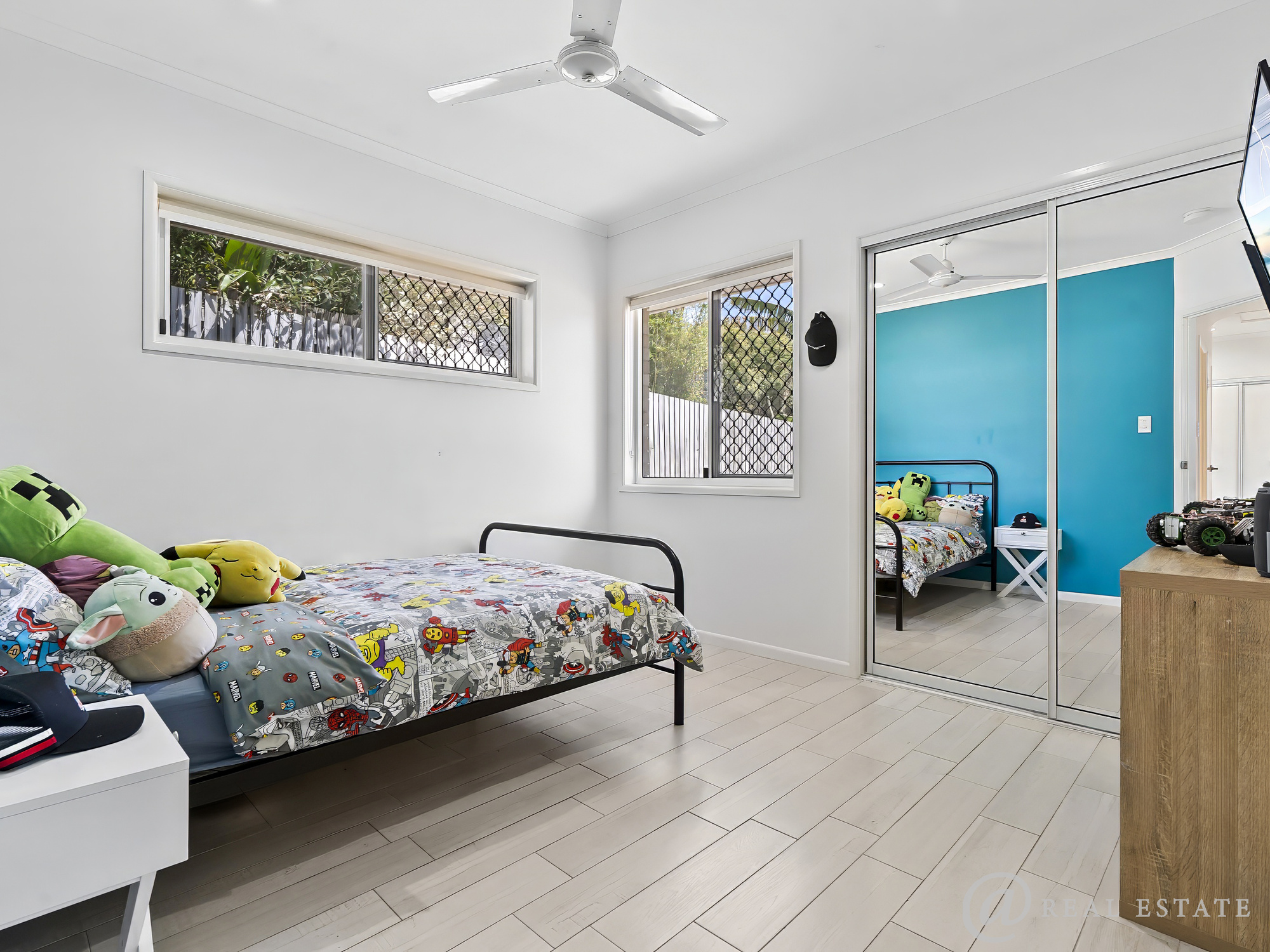 - Three additional queen-sized bedrooms, each with ceiling fans, mirrored robes and plenty of natural light — ideal for kids, guests or a home office.