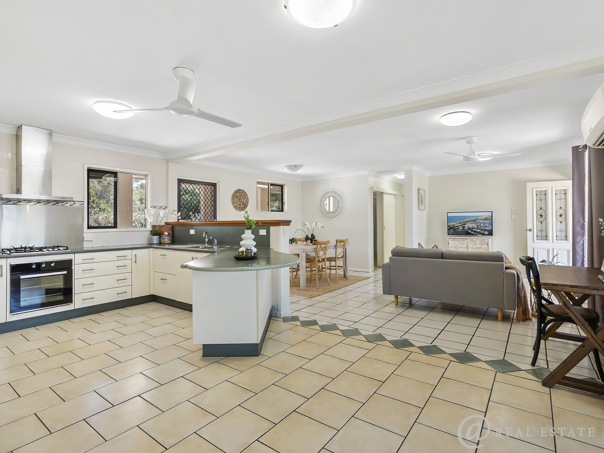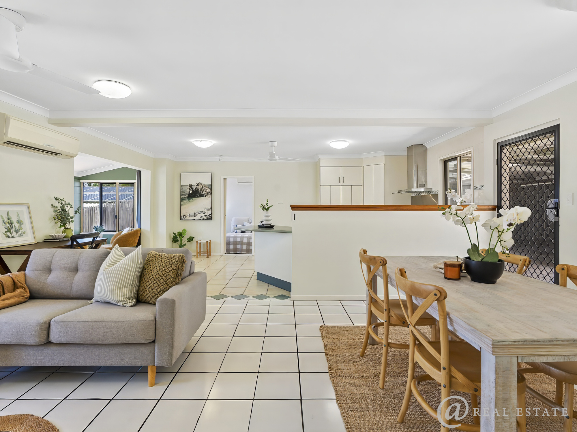 - Step through the front door and into a spacious, air-conditioned open-plan kitchen, living and dining space where large windows flood the room with natural light and invite refreshing ocean breezes all year round. Tiled throughout for cool comfort