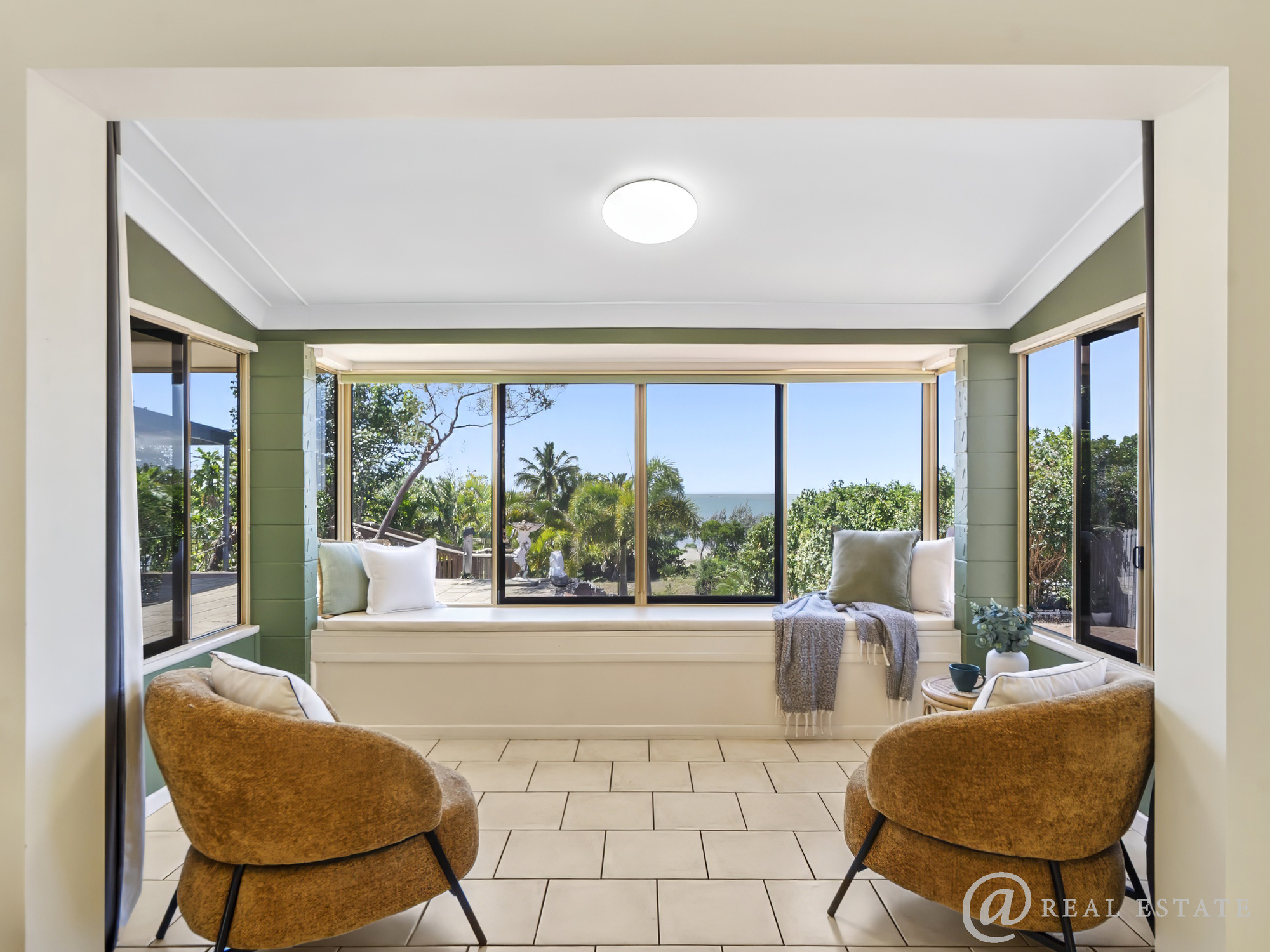 - The front patio captures the soothing sounds of the ocean, with gentle coastal breezes maintaining a comfortable temperature year-round — the perfect place to enjoy glorious sunrises over the Keppel Islands with your morning cuppa.