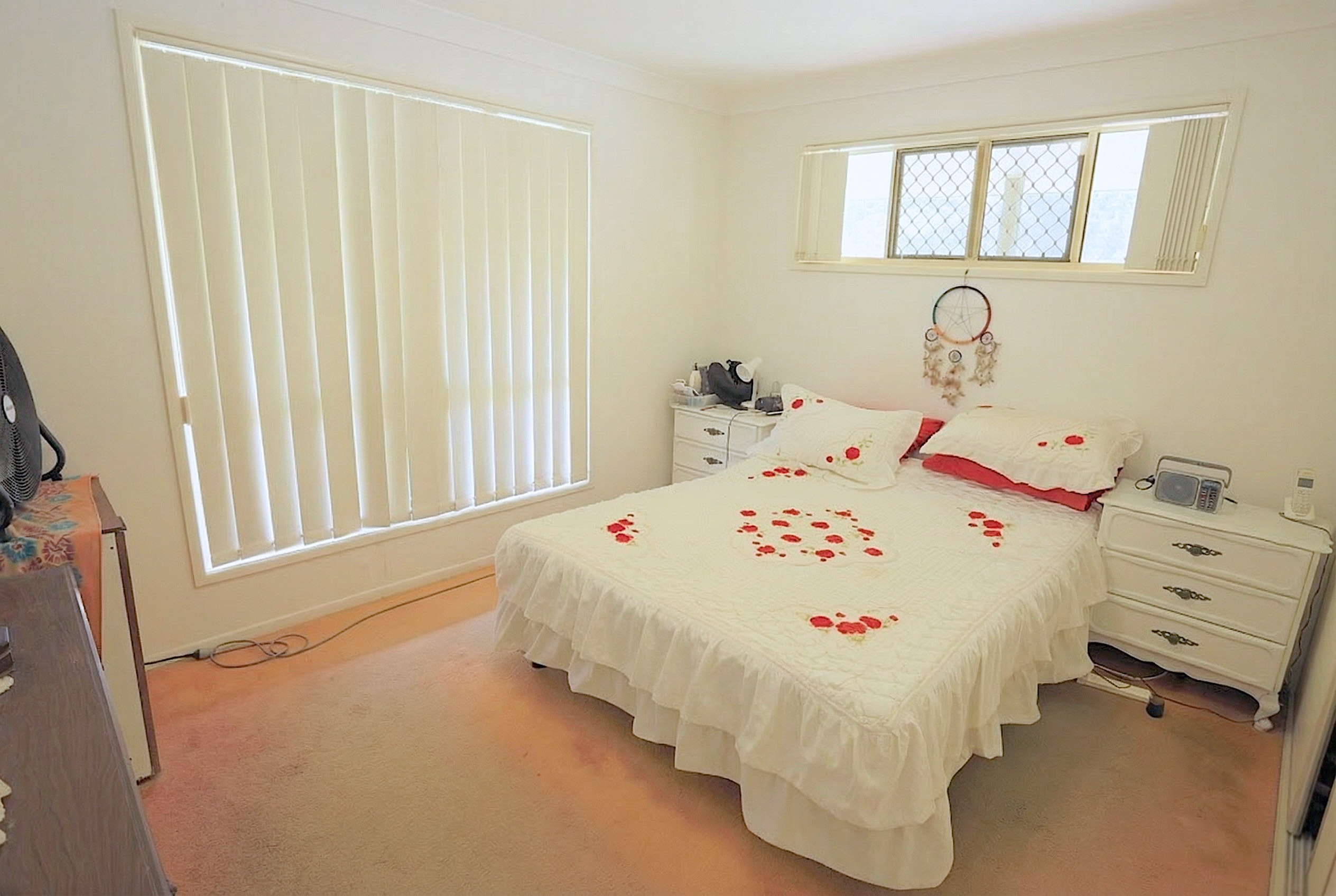 The home offers three comfortable bedrooms, each with built-in cupboards and large windows designed to capture natural light and breezes.