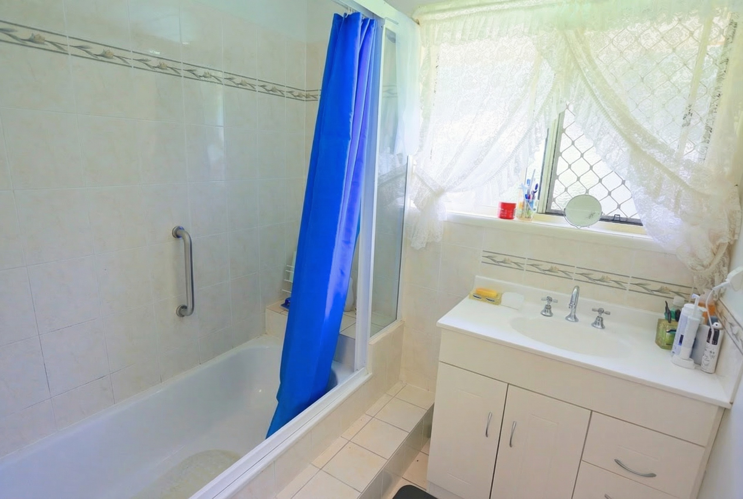 The main bathroom includes a shower, vanity and storage, with a separate toilet for added convenience. A large laundry provides easy access to the outdoor clothesline.