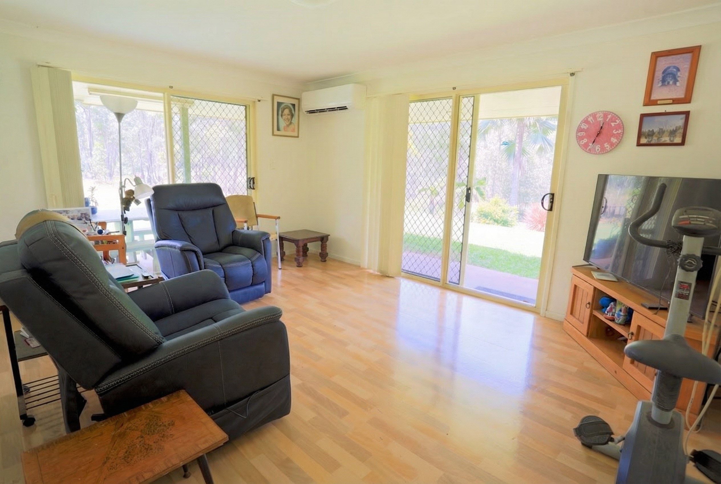 The main living area flows seamlessly out to two sides of the patio, creating the perfect indoor–outdoor connection for entertaining or simply relaxing while enjoying the peaceful surroundings. Air-conditioning ensures year-round comfort.