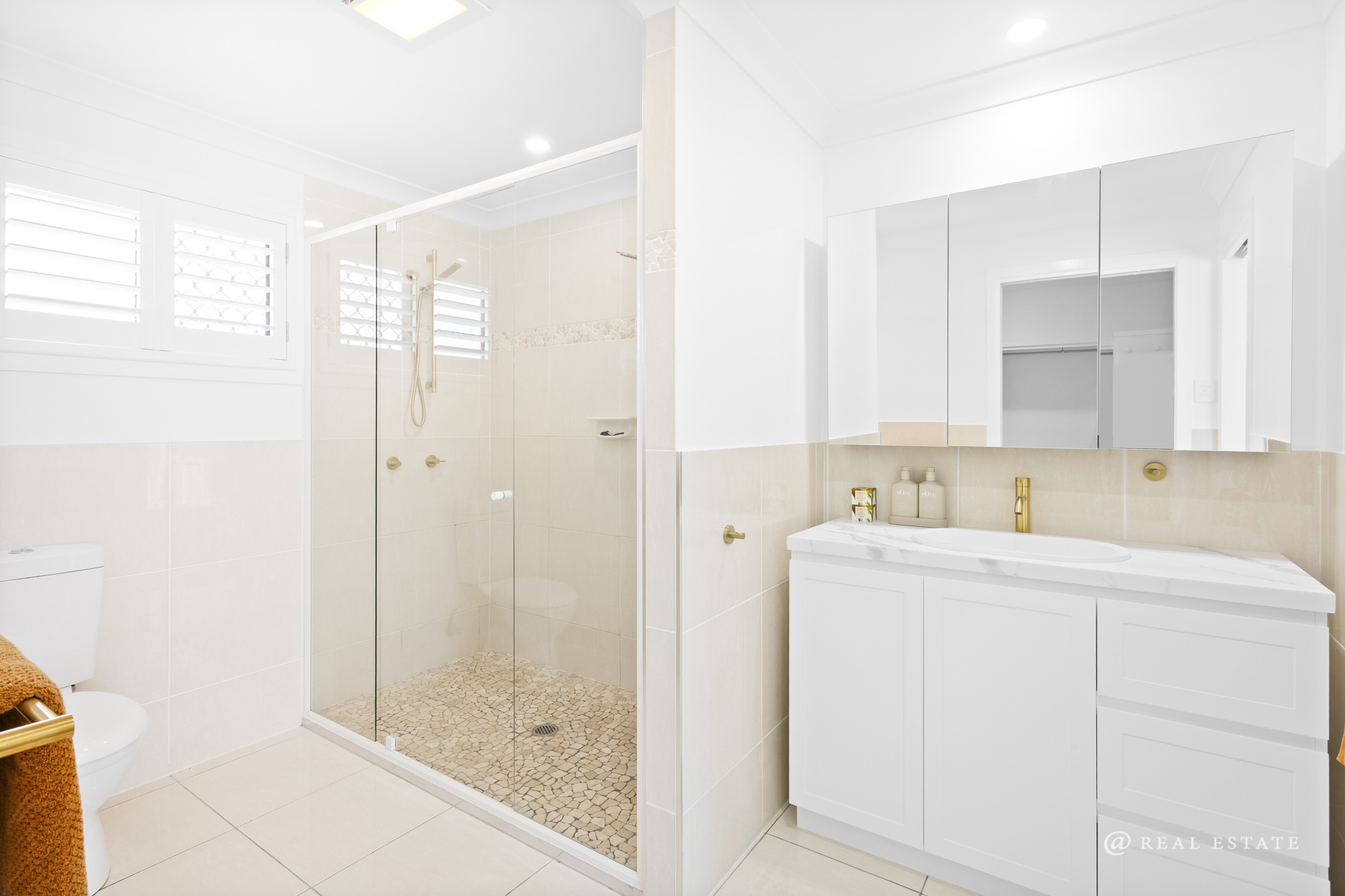 A newly renovated main bathroom reflects modern design, offering stylish finishes, a bathtub, and integrated laundry for everyday convenience. Internal stairs connect both levels with ease.